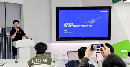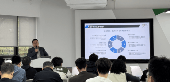 另一个生态合作伙伴隼瞻科技,也是本次研讨会的协办方,由资深技术专家冯兴光发表了《从开放到可信:RISC-V架构在安全芯片中的融合与实践》的主题演讲。他表示,在万物互联的时代,随着数字化进程的深入,芯片的安全成为基石。RISC-V以其开放、精简的指令集架构,为行业带来了打破垄断、自主创新的历史机遇。与此同时,开放性在带来透明与灵活的同时,也引发了新的安全思考。冯兴光在演讲中深度探讨了RISC-V如何从开放生态走向安全可信。他阐述了在RISC-V设计中,对抗各类威胁的融合思路,并分享一些实践方案,最终揭示:开放与可信并非对立,通过协同创新,RISC-V正成为安全芯片领域一股强大的变革力量。